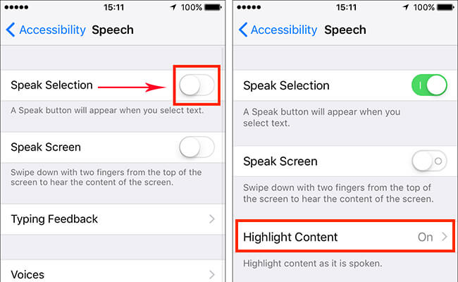 Step 1 Go to Settings > Accessibility > Spoken Content.