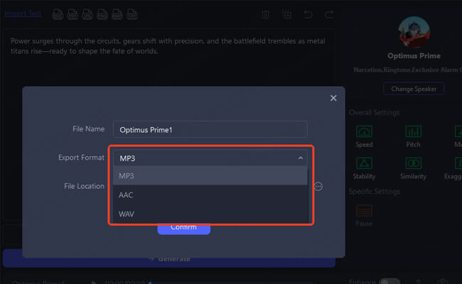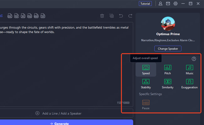 Step 2 Click "Change Speaker" and search "Optimus Prime". Choose the voice.